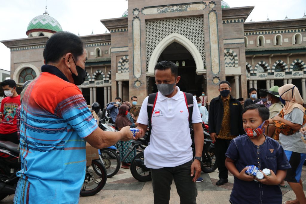 “Maap ya, saya tidak bisa kasih swap, bisanya ngasih susu. Ayo diminum buat nambah imun,†sapanya ramah. Ada ratusan orang yang hari itu menunaikan salat Jumat. Ada lansia, lelaki dewasa, dan anak-anak. Mereka mendapatkan dua hingga tiga kotak susu.