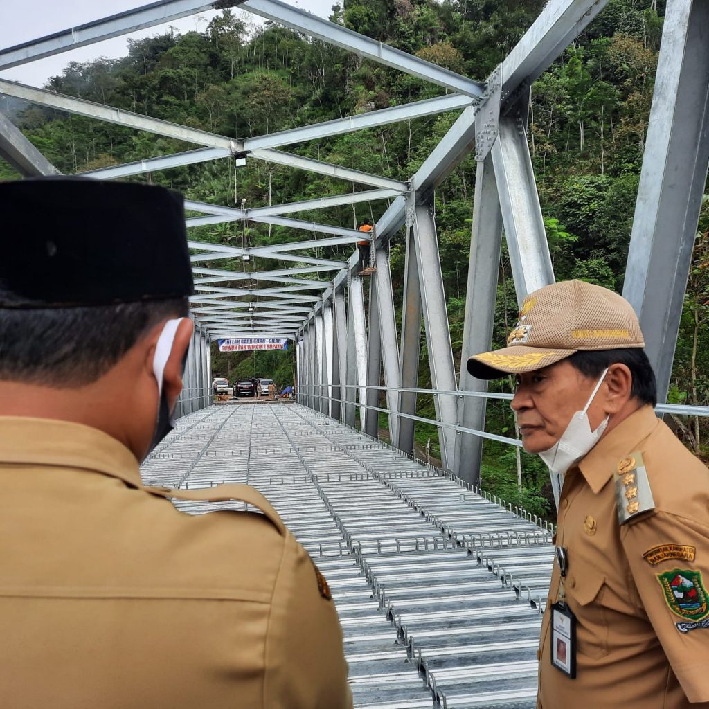 “Jembatan ini sangat penting, Sedang kita fokuskan penggarapannya secara maksimal. Saya sungguh berharap masyarakat segera menikmati untuk akses umum guna mendukung perkembangan ekonomi,†harap bupati.