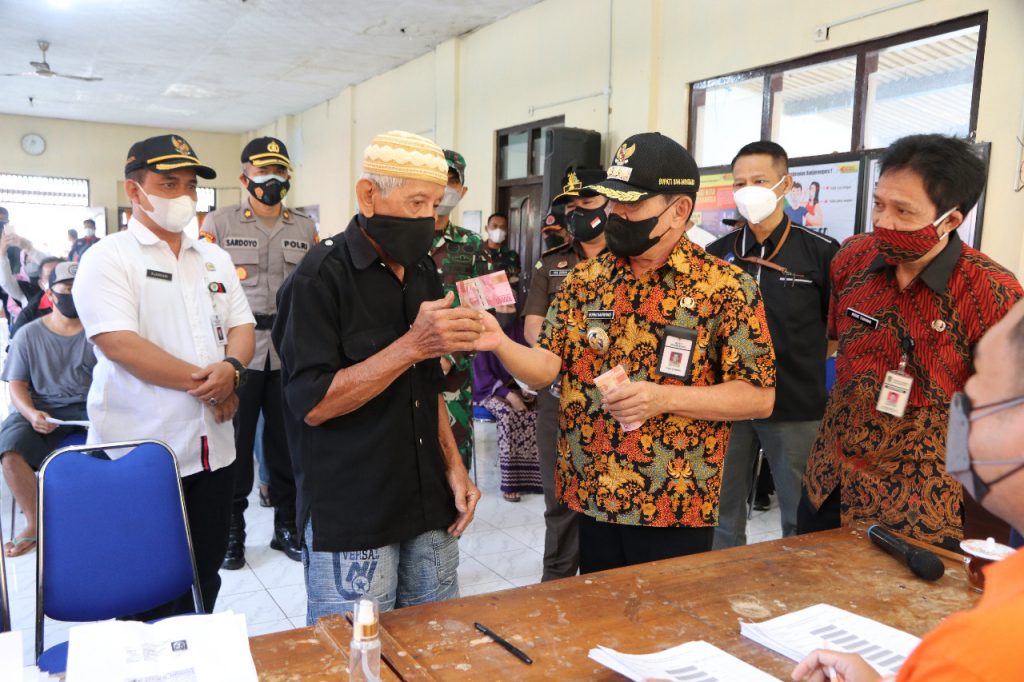 melakukan launching penyaluran dana Jaring Pengaman Sosial (JPS) PPKM tahap IV, Jumat (20/8/2021), di dua lokasi, yakni Kelurahan Kutabanjarnegara dan Desa Bawang Kecamatan Bawang.