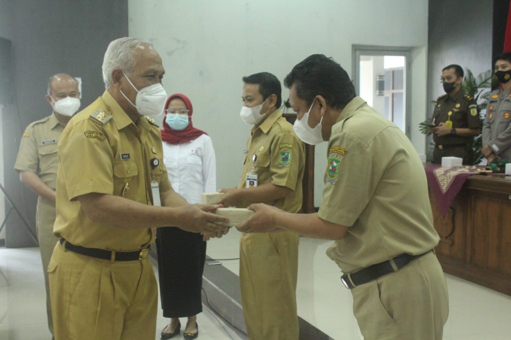 Banjarnegara (12/10) – Bulan Dana PMI Kabupaten Banjarnegara Tahun 2021 ditarget sebesar 804 Juta Rupiah, target tersebut dicanangkan melihat perolehan Bulan Dana Tahun 2019 sebesar 998 juta dan Bulan Dana Tahun 2020 yang hanya menyasar sektor pegawai sebesar 218 juta rupiah dikarenakan dalam masa pandemi Covid 19. Hal tersebut dikemukakan oleh Ketua Panitia Bulan Dana PMI Tahun 2021 sekaligus Sekda Kabupaten Banjarnegara Drs. H. Indarto, M.Si saat Pencanangan Bulan Dana PMI Tahun 2021 di Sasana Bhakti Praja Setda Banjarnegara yang dihadiri oleh Forkompinda, kepala OPD, Camat, Kepala BUMN/BUMD, dan PMI Kecamatan.