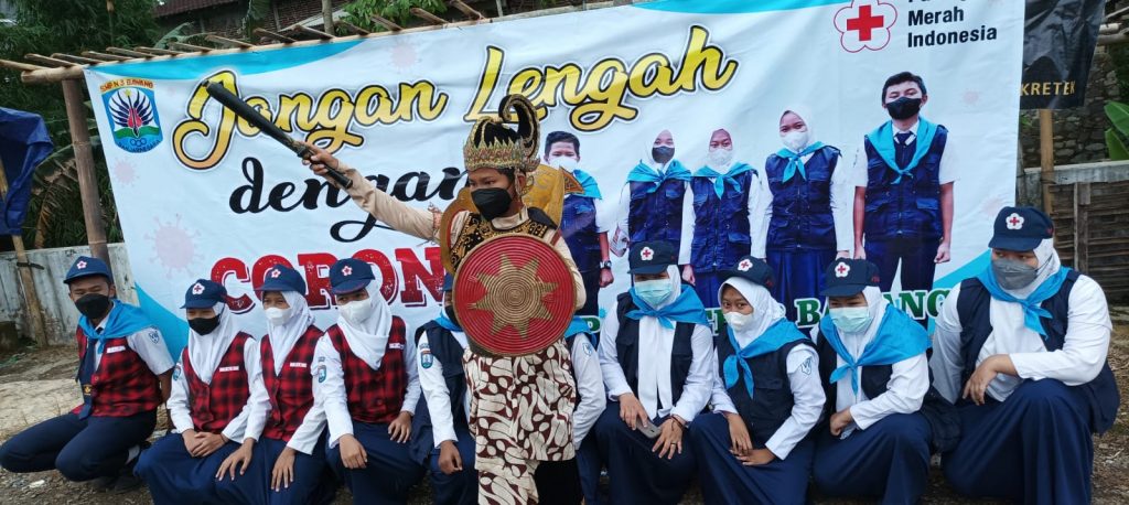 Banjarnegara (10/11) – Semangat hari pahlawan tanggal 10 November 2021 diwarnai dengan aksi nyata oleh adik adik anggota Palang Merah Remaja (PMR) unit SMPN 3 Bawang dengan terjun dan blusukan ke pasar Wanadri mensosialisasikan protokol kesehatan dan pembagian ratusan masker bagi pengunjung dan pedagang pasar menggunakan kostum Gatotkaca.