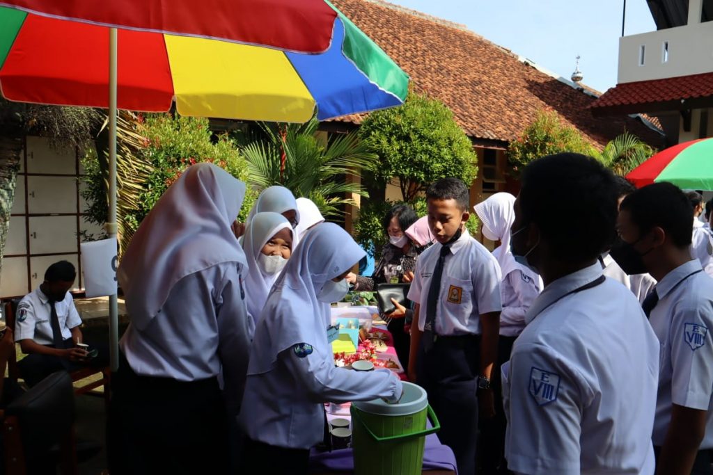 Dalam kegiatan ini, setiap kelas dibagi menjadi 4 kelompok yang terdiri dari 8 – 9 siswa, total ada 9 lapak plus 1 lapak dr OSIS. Masing-masing kelompok akan berjualan secara bergantian dan dikunjungi serta diapresiasi oleh siswa kelas VII dan VIII.