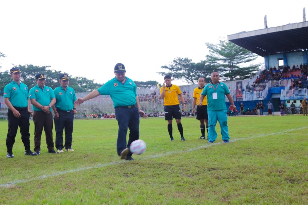 Pj Bupati Banjarnegara, Tri Harso Widirahmanto melakukan Kick Off mengawali pertandingan pembuka Piala Kepala Satuan Angkatan Darat (Kasad) Liga Santri PSSI 2022 antara Ponpes Darunnajah melawan Ponpes Tanbihul Ghofiliin yang digelar di Stadion Soemitro Kolopaking, Senin (20/6).