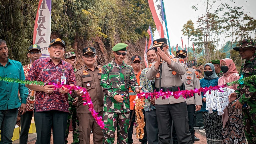 Usai penyerahan program kerja, rombongan Forkopimda bersama Camat dan Kades meninjau lokasi hasil pembangunan TMMD. (amar/bagas)