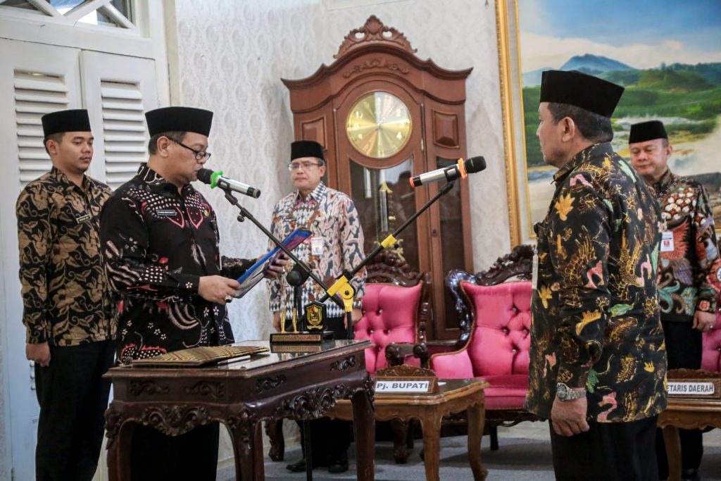 Pj Bupati Banjarnegara, Tri Harso Widirahmanto melantik 23 pejabat administrator dan pengawas di lingkungan Pemerintah Kabupaten Banjarnegara. Pengambilan sumpah dan pelantikan dilaksanakan di Pringgitan Rumah Dinas Bupati Banjarnegara, Senin (17/4).