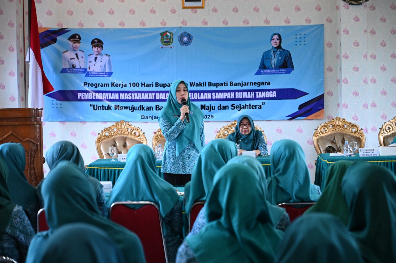 Dalam upaya menyukseskan program kerja 100 hari Kinerja Bupati dr Amalia Desiana dan Wakil Bupati Wakhid Jumali, Tim Penggerak PKK Kabupaten Banjarnegara menggelar pelatihan pemberdayaan masyarakat dalam pengelolaan sampah rumah tangga. Kegiatan dibuka langsung oleh Bupati dr. Amalia Desiana, Kamis (15/5/2025) di aula PKK Banjarnegara.